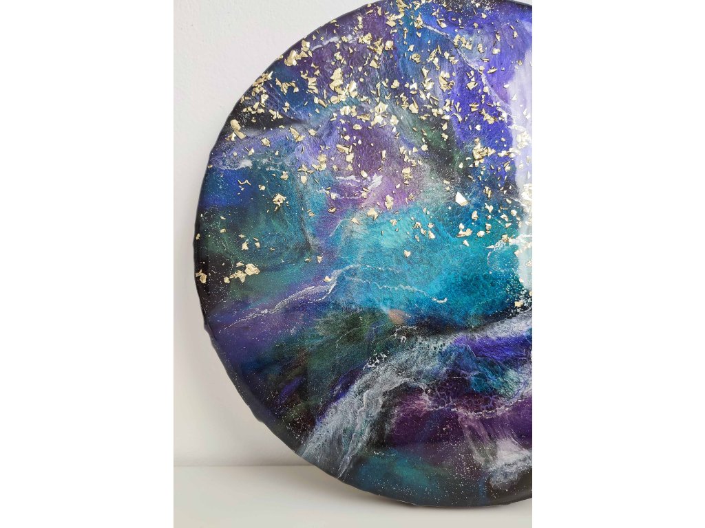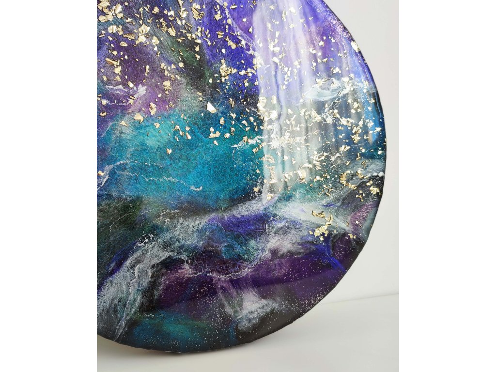Obraz vznikal ručně, odléváním několika vrstev epoxidové pryskyřice, což vytváří ohromující vizuální hloubku. Trojrozměrné efekty malby jsou dechberoucí. Prokládané vrstvy, světlo odrážející pigmenty a pečlivě umístěné kamínky, vytvářejí fascinující pocit hloubky a pohybu, které vás donutí znovu a znovu k novému prozkoumávání obrazu. Interstellar není jen obraz; je to jedinečné dílo svého druhu – nekupujete jen umění; získáváte kousek vesmíru, který je výhradně váš. Žádné dva kusy nikdy nemohou být stejné.