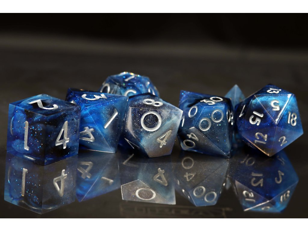 Ručně vyráběná sada kostek z epoxidové pryskyřice.