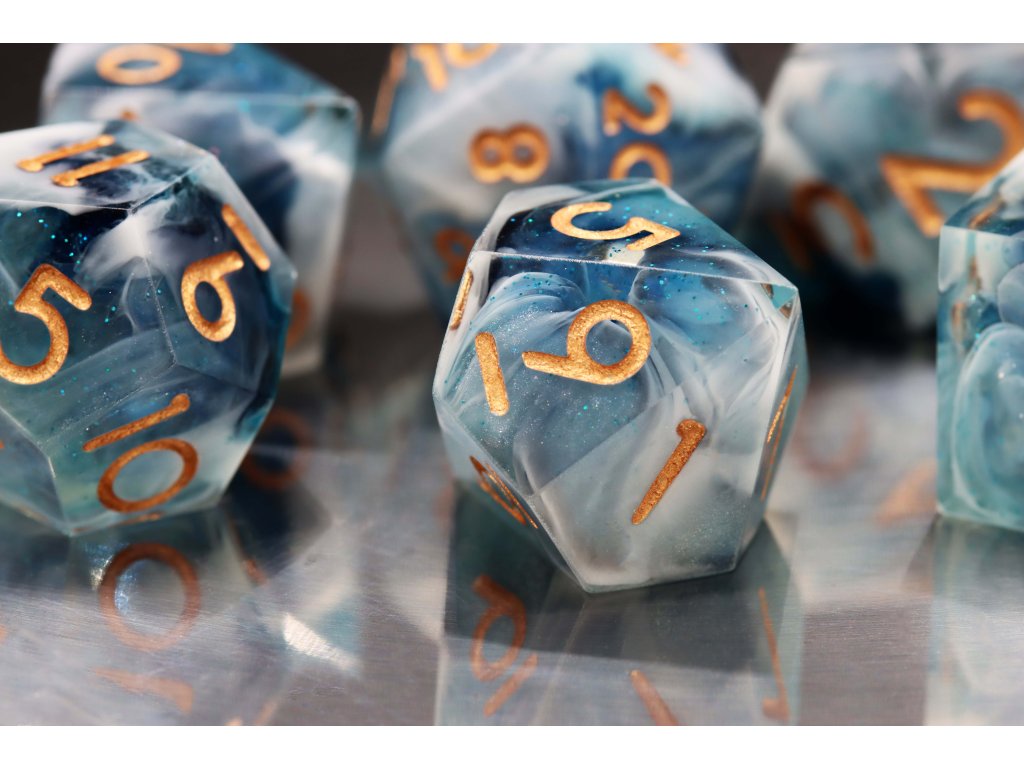 Ručně vyráběná sada kostek z epoxidové pryskyřice.