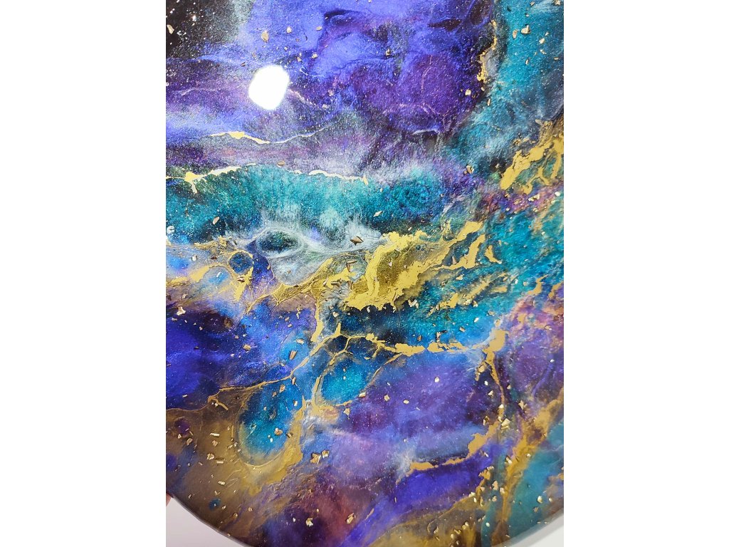 Obraz vznikal ručně, odléváním několika vrstev epoxidové pryskyřice, což vytváří ohromující vizuální hloubku. Trojrozměrné efekty malby jsou dechberoucí. Prokládané vrstvy, světlo odrážející pigmenty a pečlivě umístěné kamínky, vytvářejí fascinující pocit hloubky a pohybu, které vás donutí znovu a znovu k novému prozkoumávání obrazu. Nebula Nova není jen obraz; je to jedinečné dílo svého druhu – nekupujete jen umění; získáváte kousek vesmíru, který je výhradně váš. Žádné dva kusy nikdy nemohou být stejné.