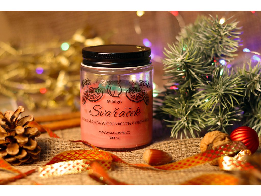 Ručně vyráběná svíčka s kořeněnou vůní svařeného vína.